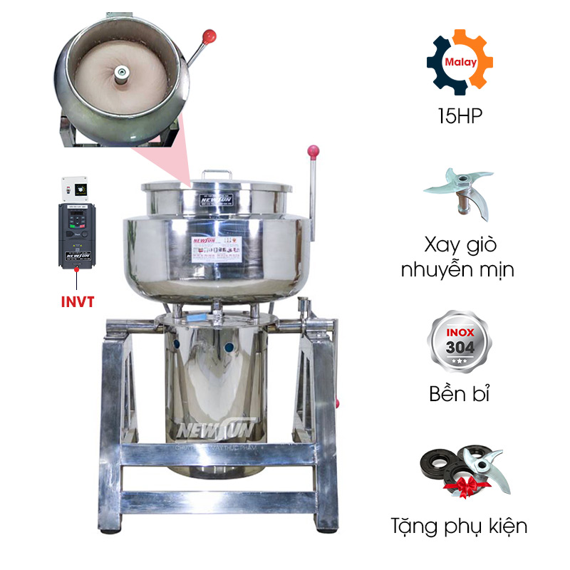 Máy xay giò chả 25kg được trang bị biến tần chính hãng INVT mới 100% công nghệ của Đức, đảm bảo: